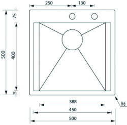 Ανοξείδωτος Νεροχύτης Κουζίνας Sanitec Focus Mix 50x50cm 1V 15226 Σατινέ