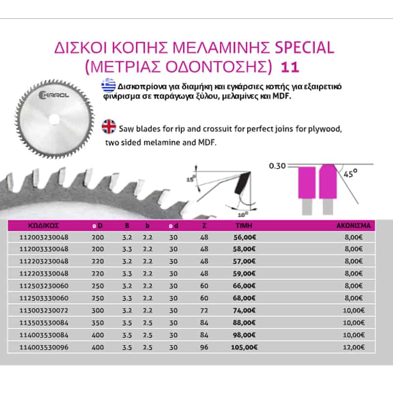 Δίσκος (11) Κοπής Μελαμίνης Special (Μέτριας Οδόντωσης) Karol