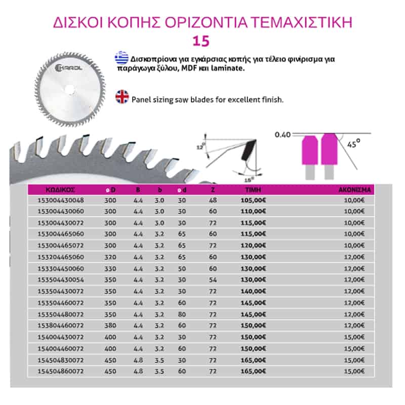 Δίσκος (15) Κοπής Οριζόντιου Τεμαχισμού Karol