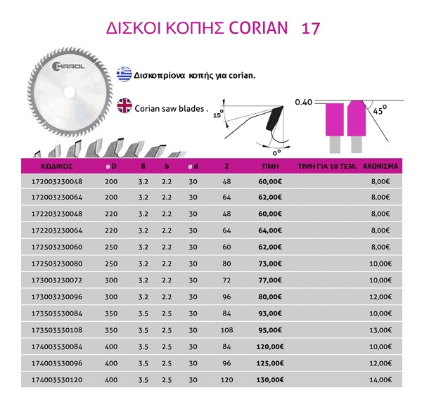 Δίσκος (17) Κοπής Corian Karol