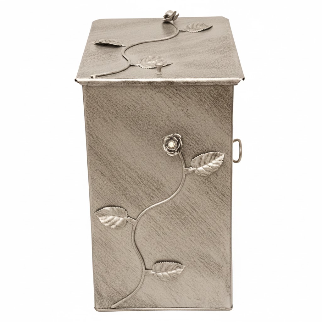 Κάδος – Ξυλοθήκη Μικρό Σχέδιο Λουλούδι Strass (810) Εκρού Πατίνα Ασημί
