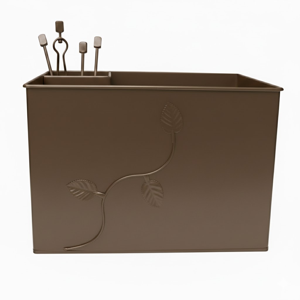 Κάδος-Ξυλοθήκη Ορθογώνια Σχέδιο Φύλλα Σετ Τζακιού