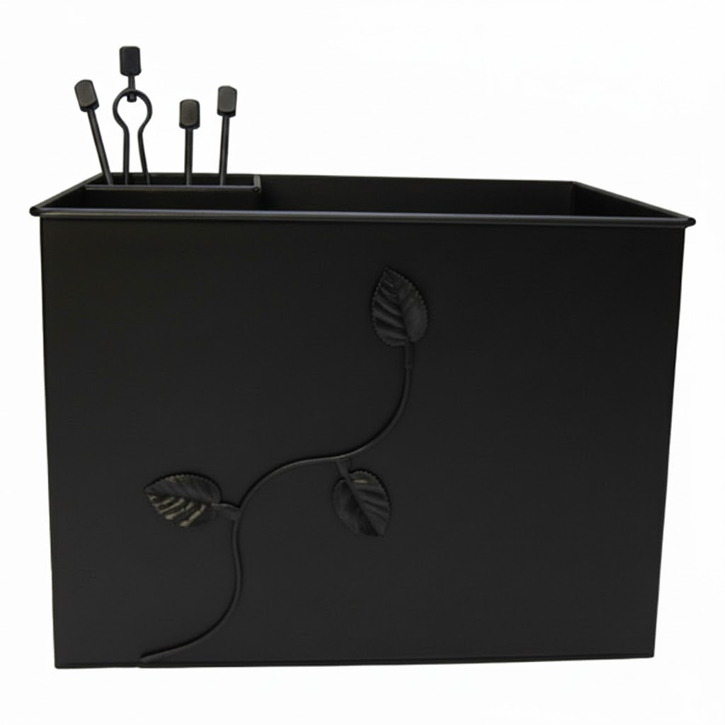 Κάδος-Ξυλοθήκη Ορθογώνια Σχέδιο Φύλλα Σετ Τζακιού (765) Μαύρο