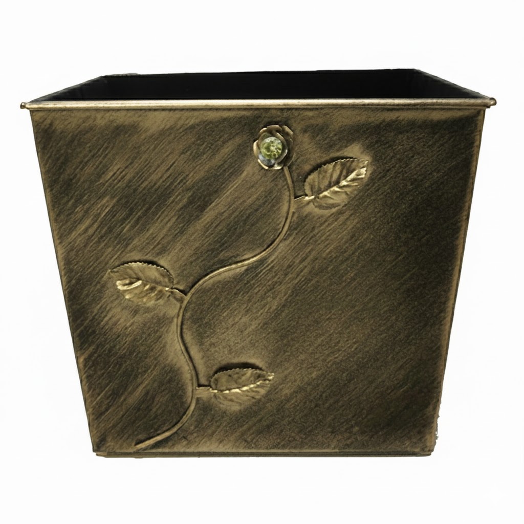Κάδος – Ξυλοθήκη Σχέδιο Λουλούδι Strass (800) Πατίνα Χρυσό