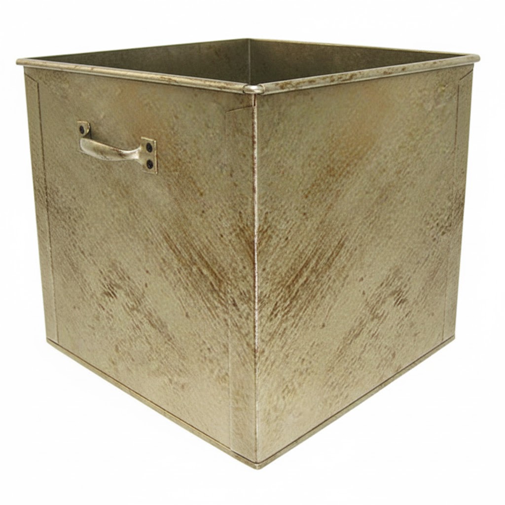 Κάδος – Ξυλοθήκη Τετράγωνος Σκέτος (2950) Εκρού Πατίνα Χρυσό