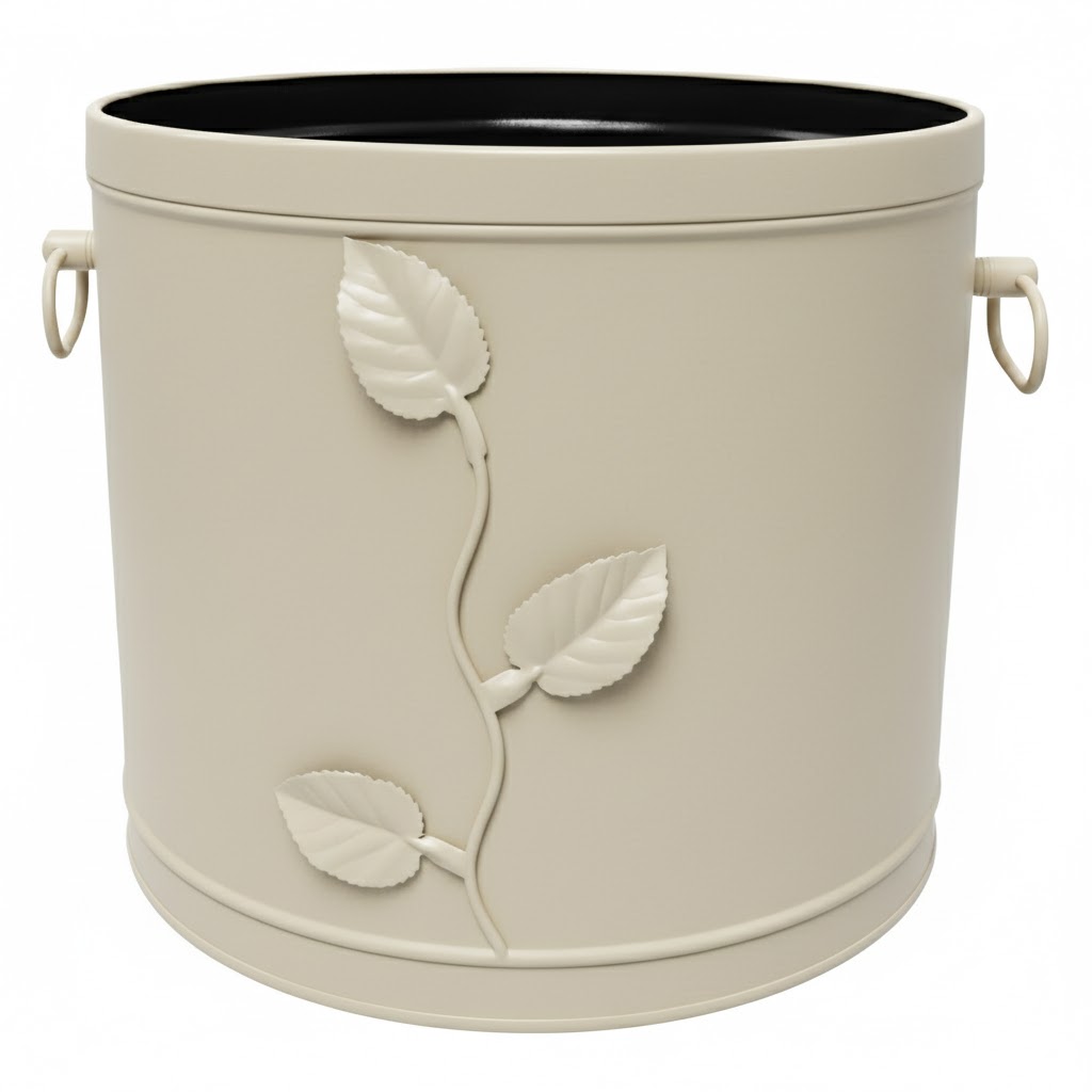 Κάδος – Ξυλοθήκη Βαρέλι Σχέδιο Φύλλα (602) Εκρού