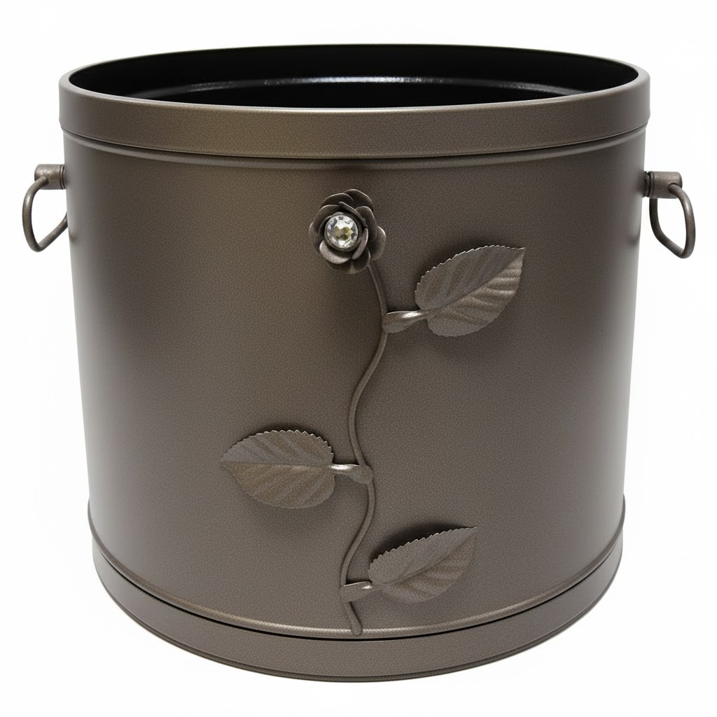 Κάδος – Ξυλοθήκη Βαρέλι Σχέδιο Λουλούδι Strass (603) Σκουριά