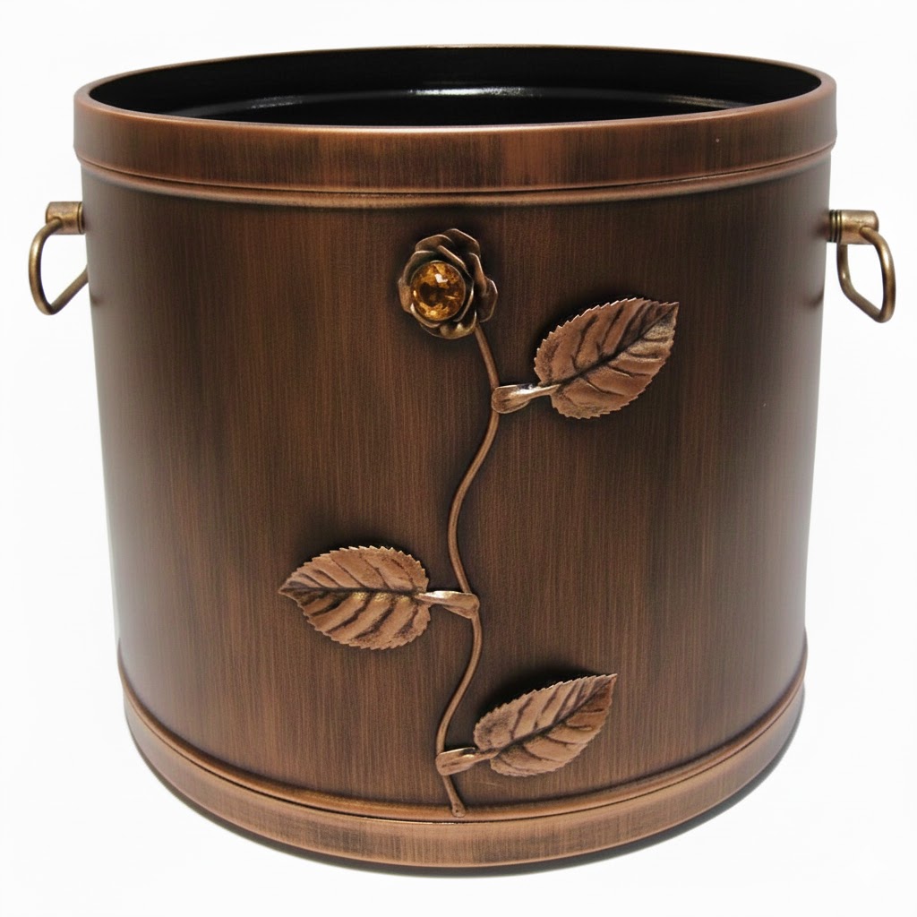 Κάδος – Ξυλοθήκη Βαρέλι Σχέδιο Λουλούδι Strass (603) Πατίνα Χαλκός