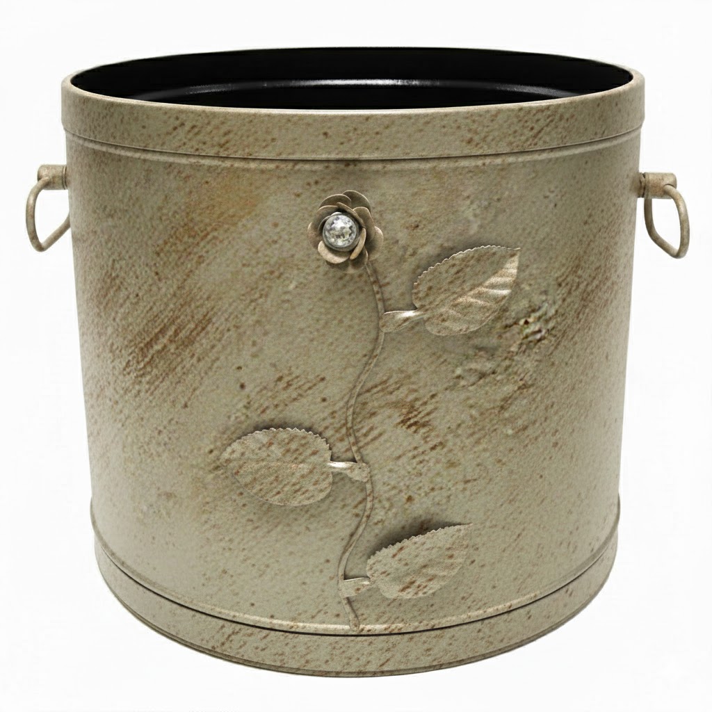 Κάδος – Ξυλοθήκη Βαρέλι Σχέδιο Λουλούδι Strass (603) Εκρού Πατίνα Χρυσό
