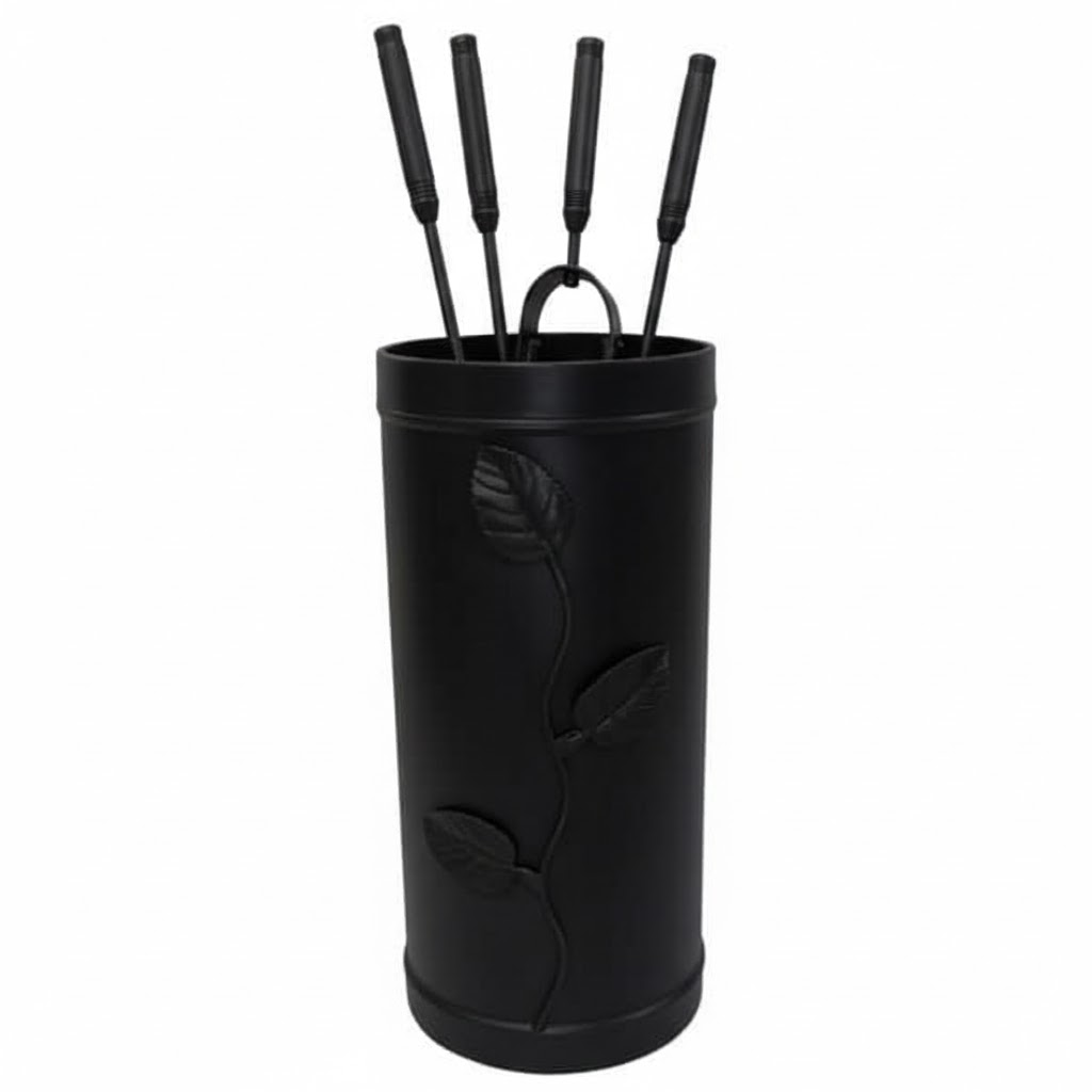 Κύλινδρος Μεγάλος Σετ Εργαλείων Τζακιού Σχέδιο Φύλλα (402) Μαύρο