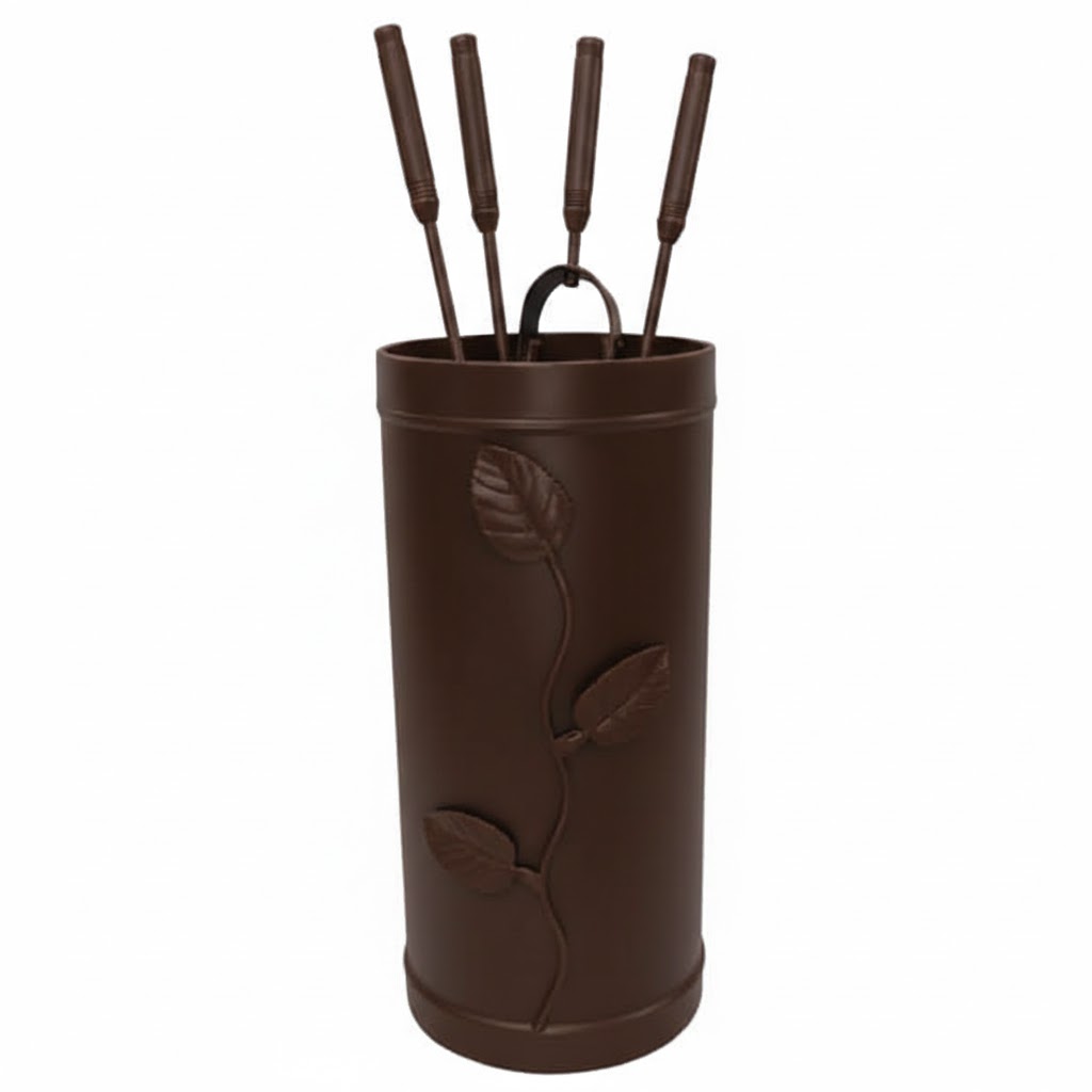 Κύλινδρος Μεγάλος Σετ Εργαλείων Τζακιού Σχέδιο Φύλλα (402) Καφέ
