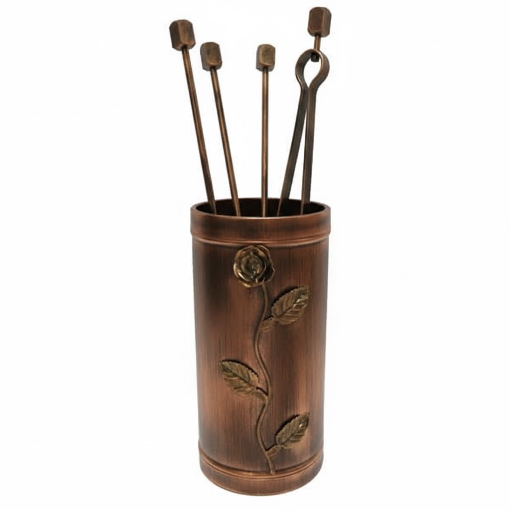 Κύλινδρος Μικρός Σετ Εργαλείων Τζακιού Σχέδιο Λουλούδι Strass (503) Πατίνα Χαλκός