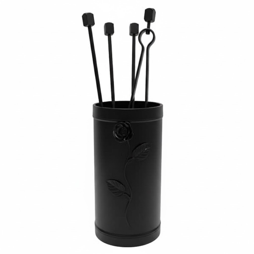 Κύλινδρος Μικρός Σετ Εργαλείων Τζακιού Σχέδιο Λουλούδι Strass (503) Μαύρο