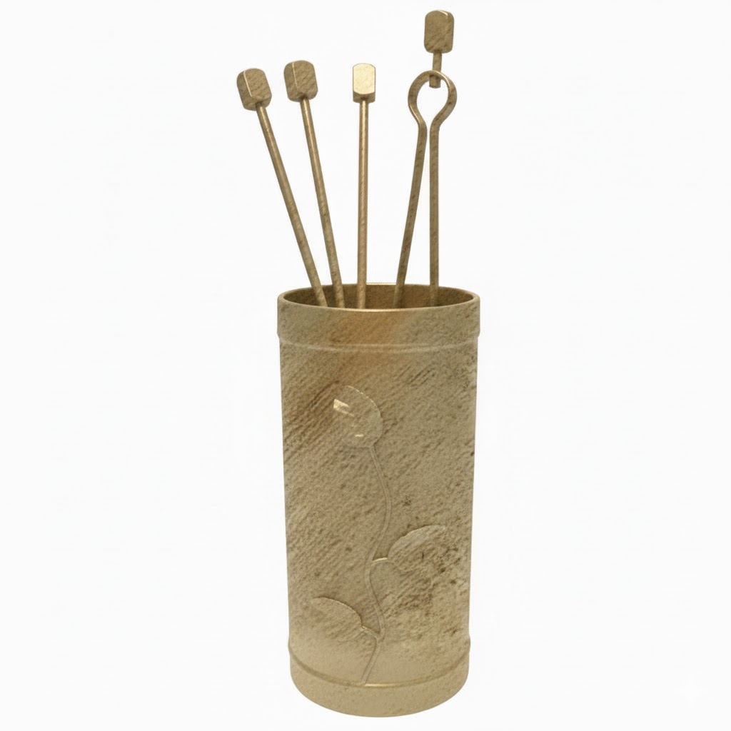 Κύλινδρος Μικρός Σετ Εργαλείων Τζακιού Σχέδιο Φύλλα