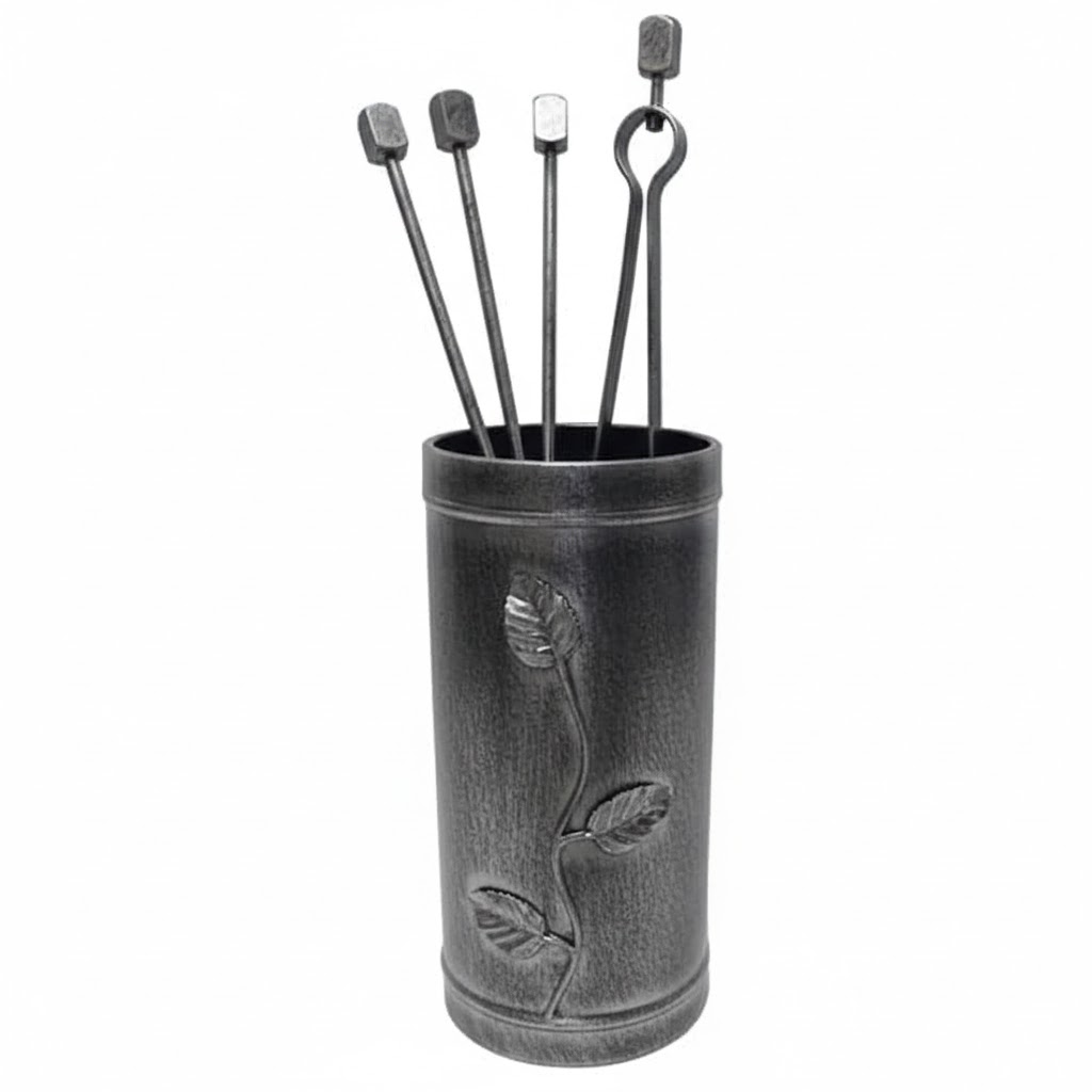 Κύλινδρος Μικρός Σετ Εργαλείων Τζακιού Σχέδιο Φύλλα (502) Πατίνα Ασημί