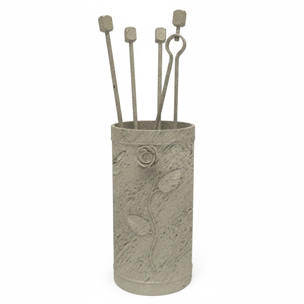 O Κύλινδρος Μικρός Σετ Εργαλεία Τζακιού Σχέδιο Λουλούδι Strass περιλαμβάνει ένα μικρό κάδο που περιέχει όλα τα απαραίτητα εργαλεία για την φροντίδα του τζακιού σας όπως φτυαράκι για τις στάχτες, αναδευτήρα, μεταλλικό σκουπάκι, τσιμπίδα. Υπάρχει επιλογή ανάμεσα σε 11 διαφορετικά χρώματα τα οποία είναι: Μαύρο, Καφέ, Ασημί, Σκουριά, Εκρού και Πατίνα Χρυσή, Πατίνα Ασημί, Πατίνα Χαλκός, Εκρού Πατίνα Χρυσό, Εκρού Πατίνα Ασημί, Εκρού Πατίνα Χαλκός.