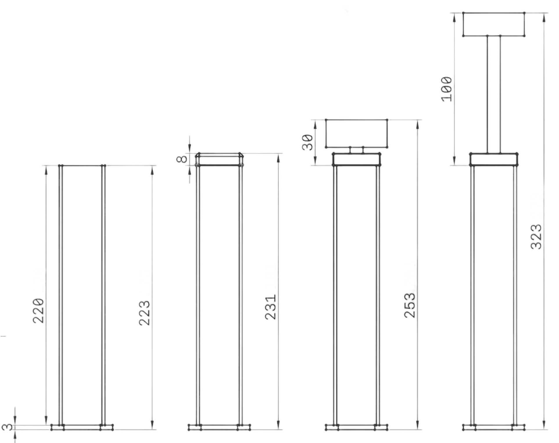 Το προϊόν περιλαμβάνει μεταλλικό πόδι διαστάσεων 3x3x23mm