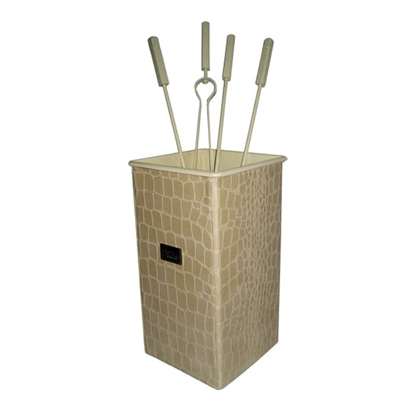 O Σετ Εργαλείων Τζακιού Τετράγωνο Μεγάλο Σειρά Κρόκο Εκρού είναι ένας κάδος ιδανικός για τοποθέτηση του σετ εργαλείων που παρουσιάζονται στο παρόν προϊόν. Ιδιαίτερης αισθητικής με μεταλλικό σκελετό και επενδεδυμένος 100% με τεχνόδερμα.