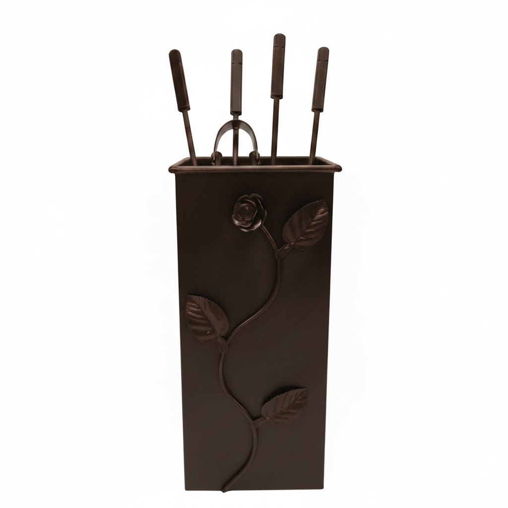 Σετ Εργαλείων Τζακιού Τετράγωνο Μεγάλο Λουλούδι Strass (074) Καφέ