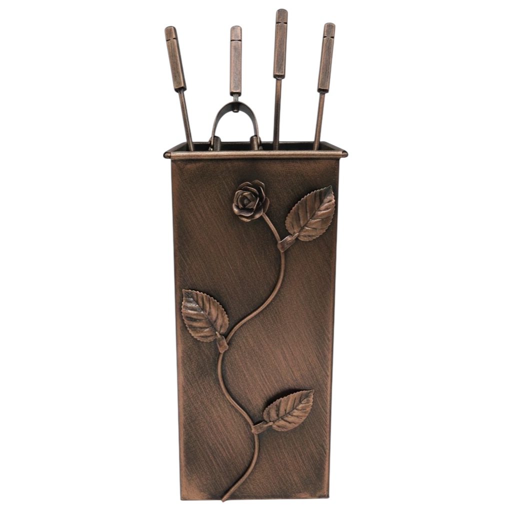 Σετ Εργαλείων Τζακιού Τετράγωνο Μεγάλο Λουλούδι Strass (074) Πατίνα Χαλκός