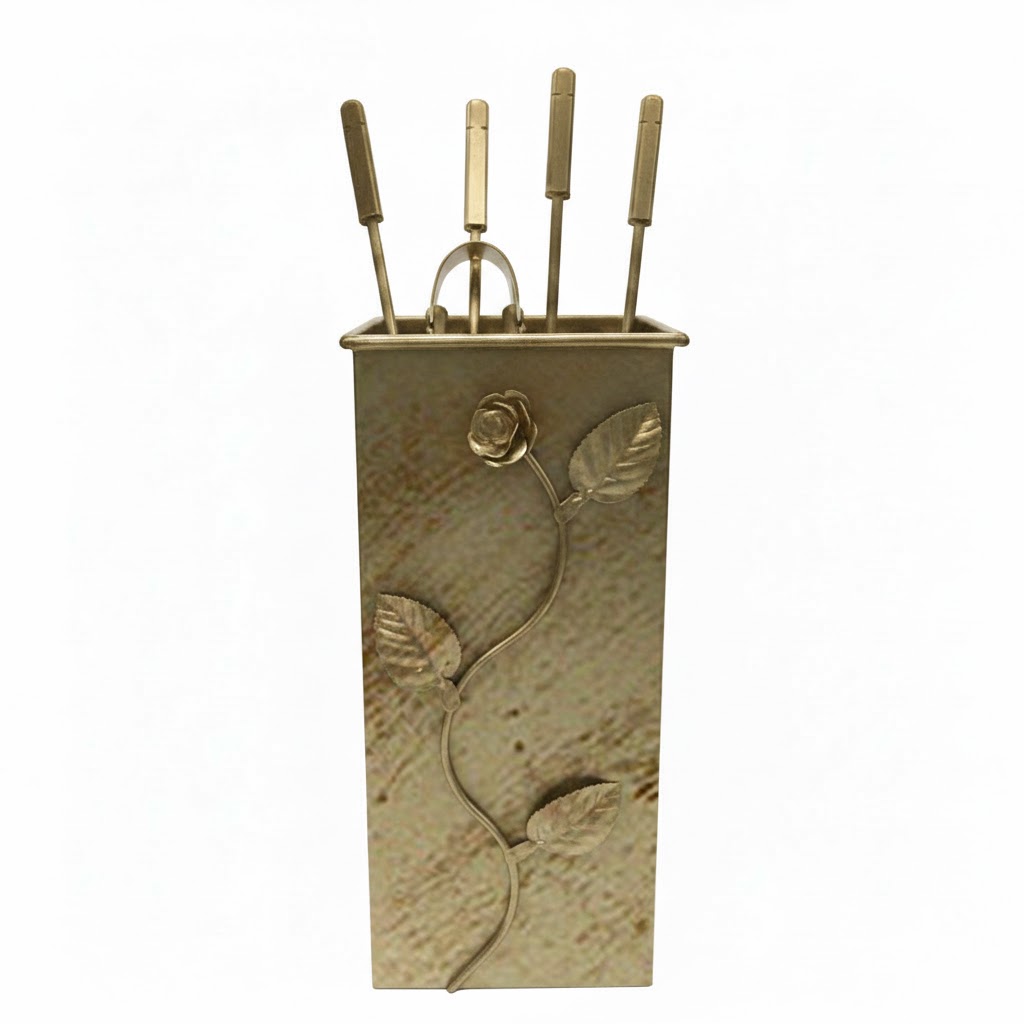 Σετ Εργαλείων Τζακιού Τετράγωνο Μεγάλο Λουλούδι Strass (074) Εκρού Πατίνα Χρυσό