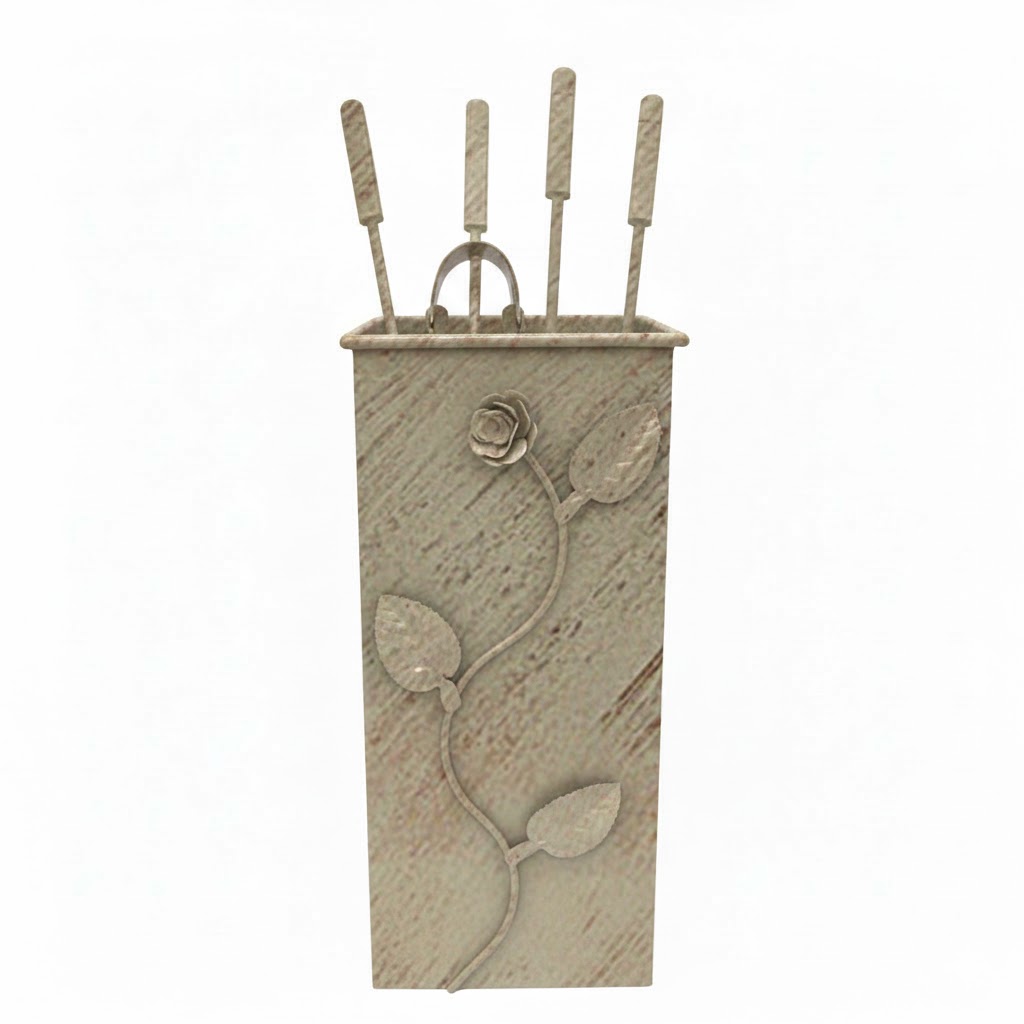 To Σετ Εργαλείων Τζακιού Τετράγωνο Μεγάλο Λουλούδι Strass περιλαμβάνει ένα μικρό κάδο που περιέχει όλα τα απαραίτητα εργαλεία για την φροντίδα του τζακιού σας όπως φτυαράκι για τις στάχτες, αναδευτήρα, μεταλλικό σκουπάκι, τσιμπίδα. Υπάρχει επιλογή ανάμεσα σε 11 διαφορετικά χρώματα τα οποία είναι: Μαύρο, Καφέ, Ασημί, Σκουριά, Εκρού και Πατίνα Χρυσή, Πατίνα Ασημί, Πατίνα Χαλκός, Εκρού Πατίνα Χρυσό, Εκρού Πατίνα Ασημί, Εκρού Πατίνα Χαλκός.