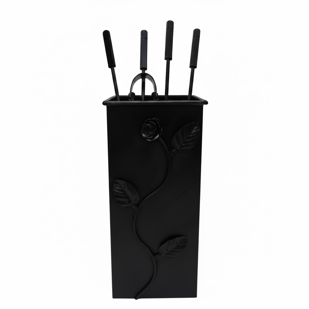 Σετ Εργαλείων Τζακιού Τετράγωνο Μεγάλο Λουλούδι Strass (074) Μαύρο
