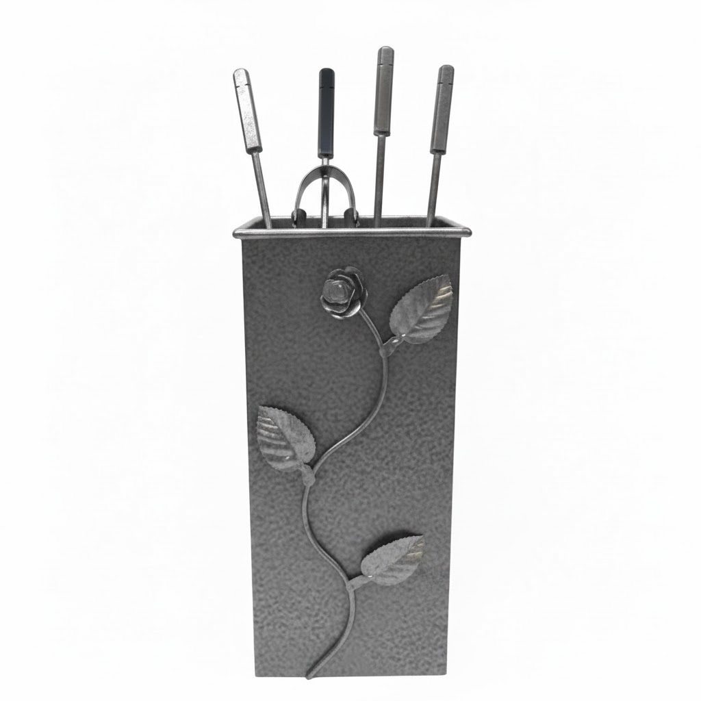 To Σετ Εργαλείων Τζακιού Τετράγωνο Μεγάλο Λουλούδι Strass περιλαμβάνει ένα μικρό κάδο που περιέχει όλα τα απαραίτητα εργαλεία για την φροντίδα του τζακιού σας όπως φτυαράκι για τις στάχτες, αναδευτήρα, μεταλλικό σκουπάκι, τσιμπίδα. Υπάρχει επιλογή ανάμεσα σε 11 διαφορετικά χρώματα τα οποία είναι: Μαύρο, Καφέ, Ασημί, Σκουριά, Εκρού και Πατίνα Χρυσή, Πατίνα Ασημί, Πατίνα Χαλκός, Εκρού Πατίνα Χρυσό, Εκρού Πατίνα Ασημί, Εκρού Πατίνα Χαλκός.