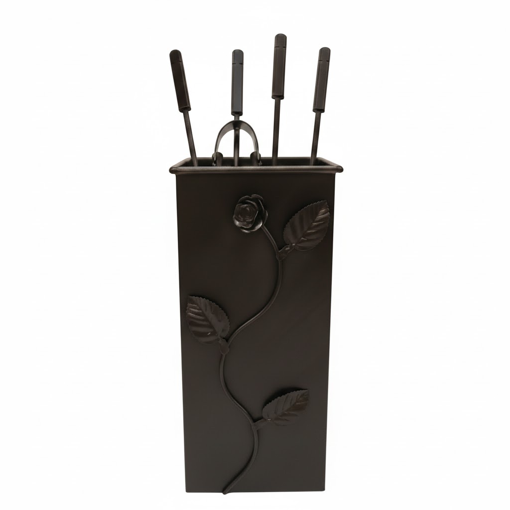 Σετ Εργαλείων Τζακιού Τετράγωνο Μεγάλο Λουλούδι Strass (074) Σκουριά