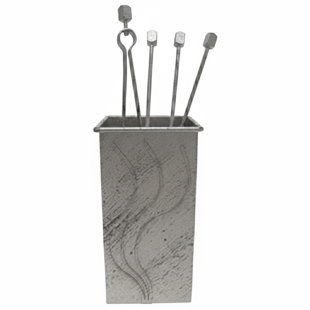 Σετ Εργαλείων Τζακιού Τετράγωνο Μικρό Φλόγα (070) Εκρού Πατίνα Ασημί