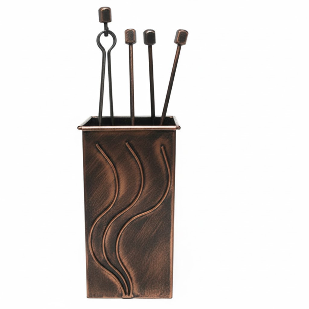Σετ Εργαλείων Τζακιού Τετράγωνο Μικρό Φλόγα (070) Πατίνα Χαλκός